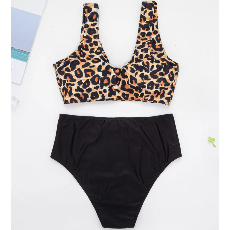 • Detalhes: biquíni moda feminina com sutiã cropped leopardo, decote em v e calcinha hot pants